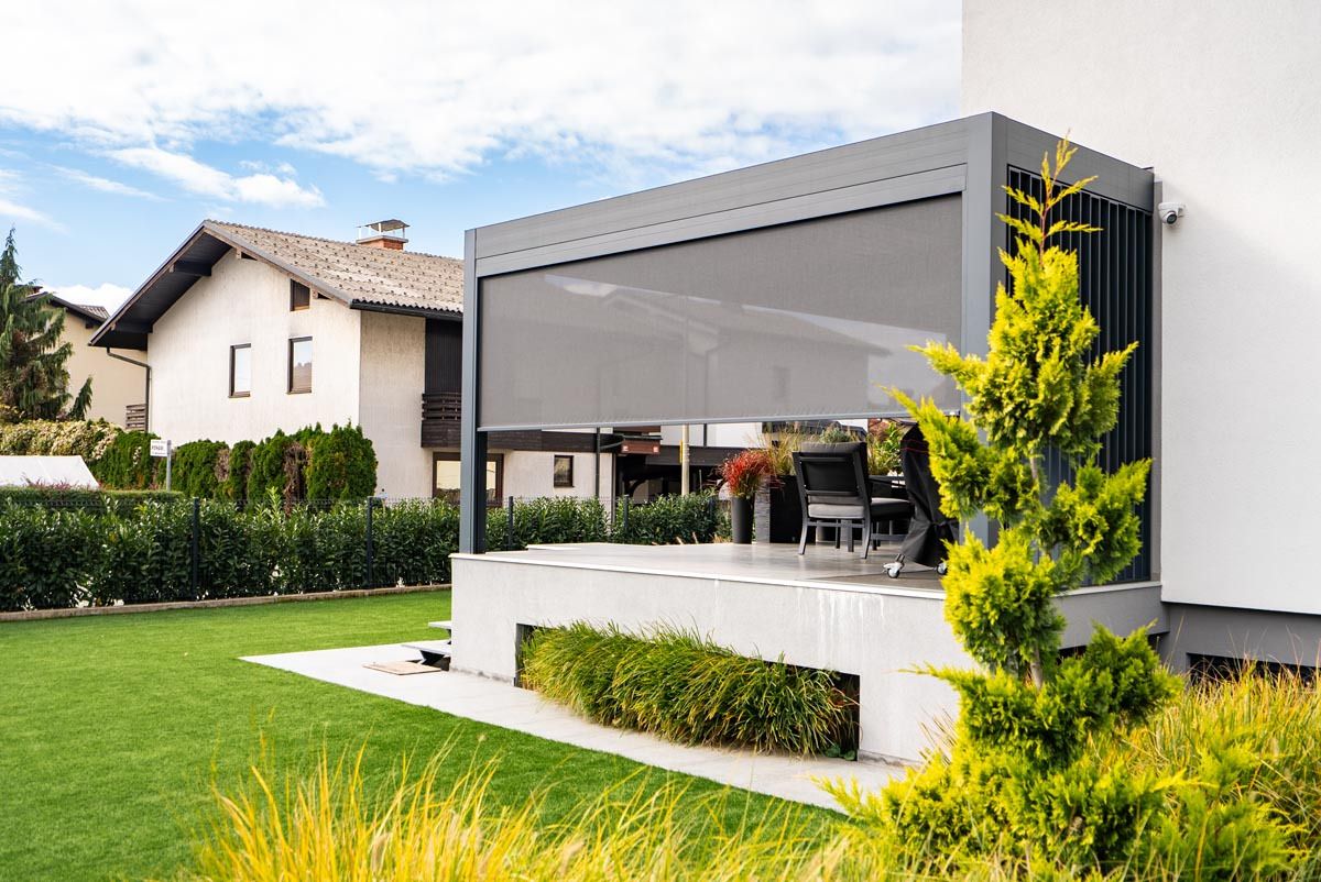 Na terasi novogradnje na Štajerskem stoji bioklimatska pergola v kombinaciji antracitne (RAL 7016) konstrukcije in belih (RAL 9010) lamel, ki se s svojim sodobnim videzom odlično sklada z arhitekturo objekta.