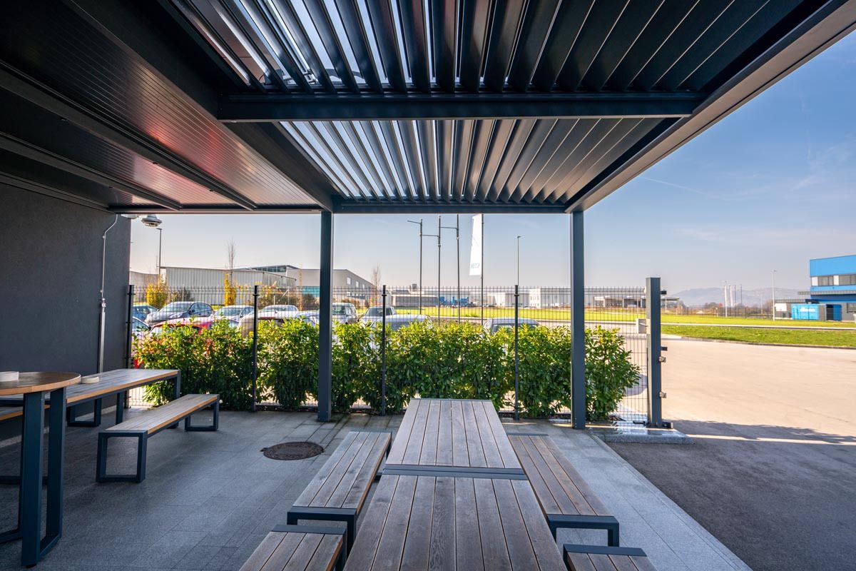 Z zasnovo, ki omogoča zaščito pred soncem, vetrom, dežjem in snegom pergola nudi popoln prostor za sprostitev zaposlenih, kjer se lahko v udobju in senci spočijejo, družijo ali opravijo krajši sestanek na svežem zraku.