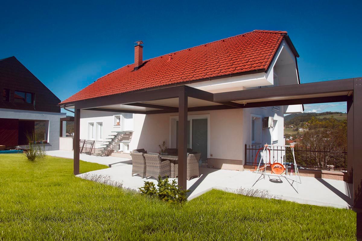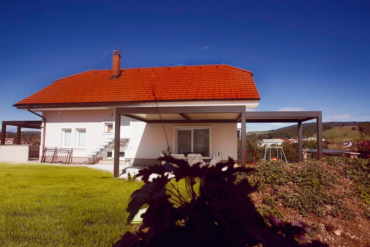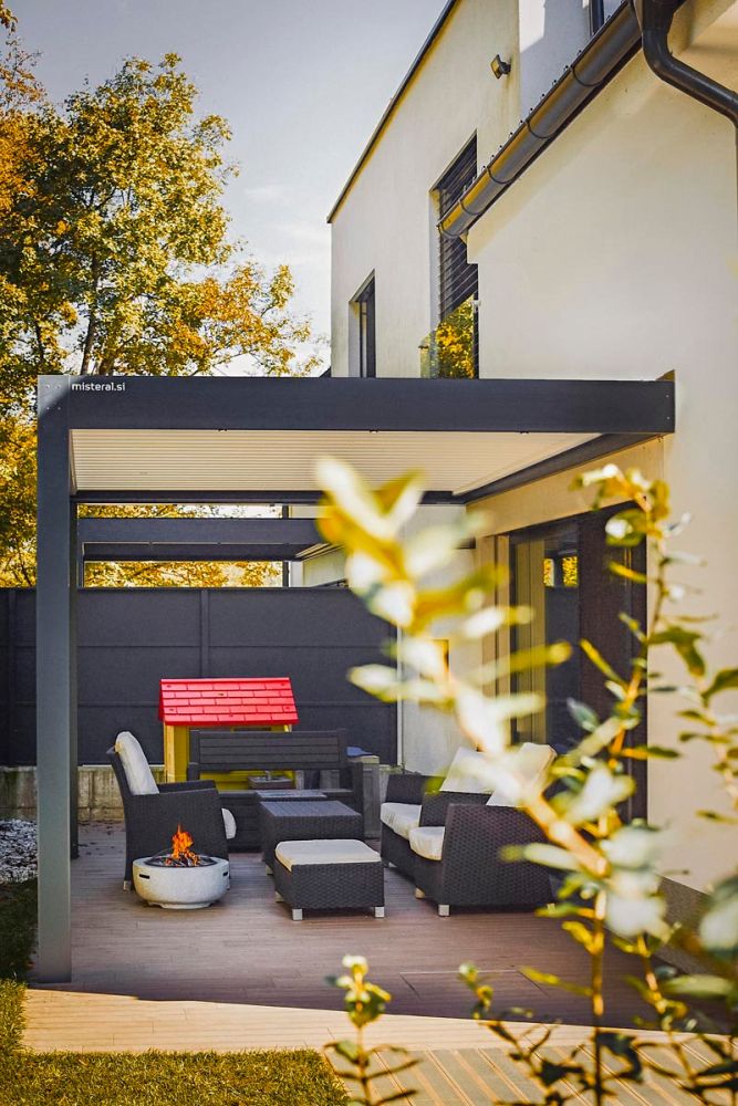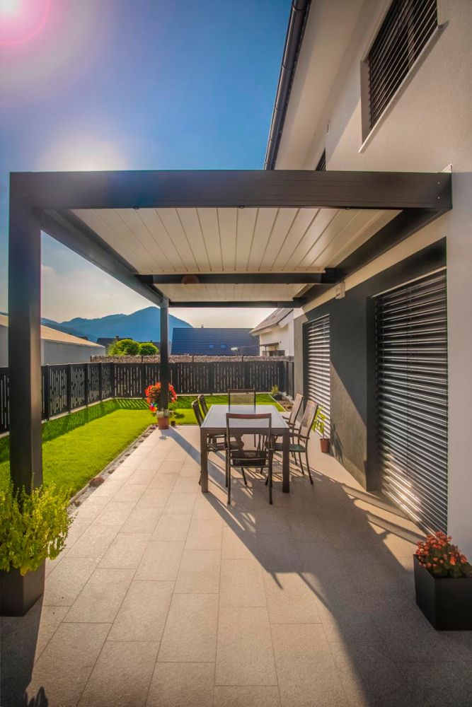 Pergola zagotavlja vrhunsko zaščito pred soncem in dežjem ter doda sodoben estetski pridih terasi hiše v Grosupljem.