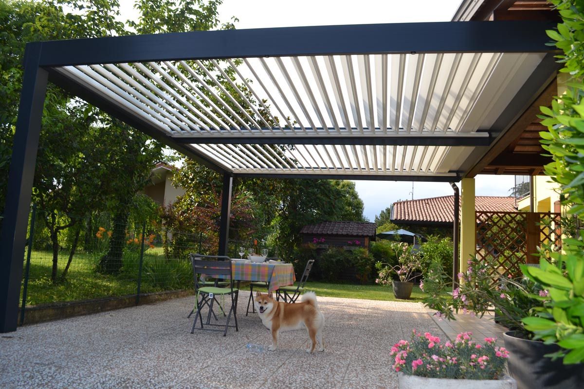Pergola je sestavljena iz dveh polj vzporednih rotirajočih lamel z možnostjo naklona do 160°, ki omogočajo prilagoditev svetlobi in zračenju glede na vremenske razmere.