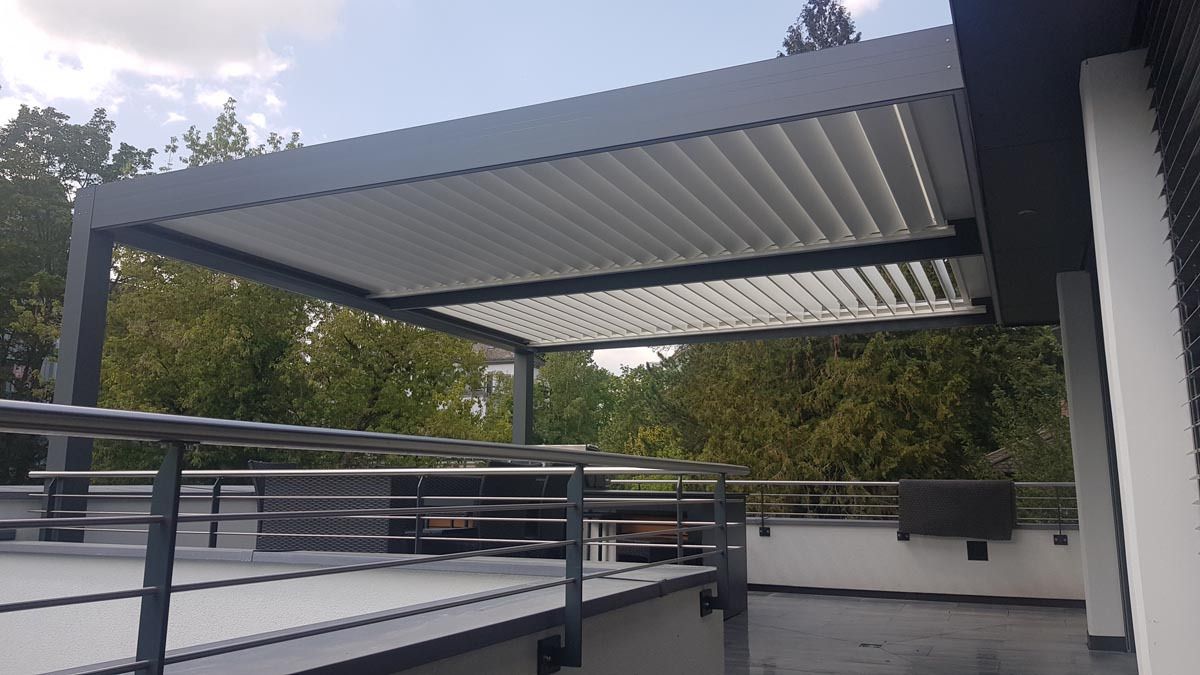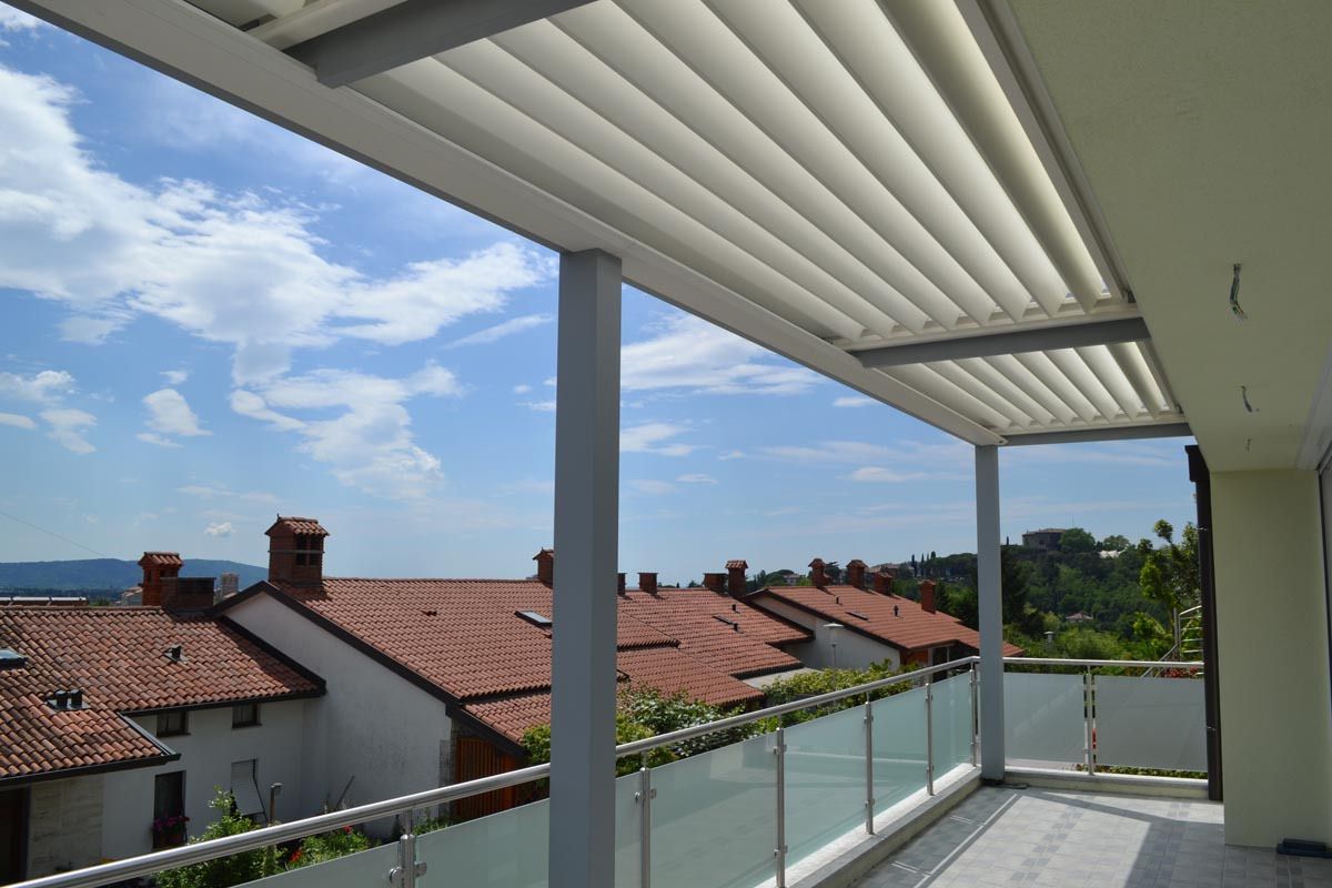 Pergola je zasnovana s tremi polji vzporednih lamel, kar omogoča enakomerno senčenje celotne površine ter hkrati zagotavlja estetsko usklajenost z razmerji balkona. Lamele se lahko rotirajo do 160°, kar omogoča popolno prilagoditev – od odprtosti za sončne žarke in prezračevanje do popolne zaprtosti za zaščito pred dežjem.