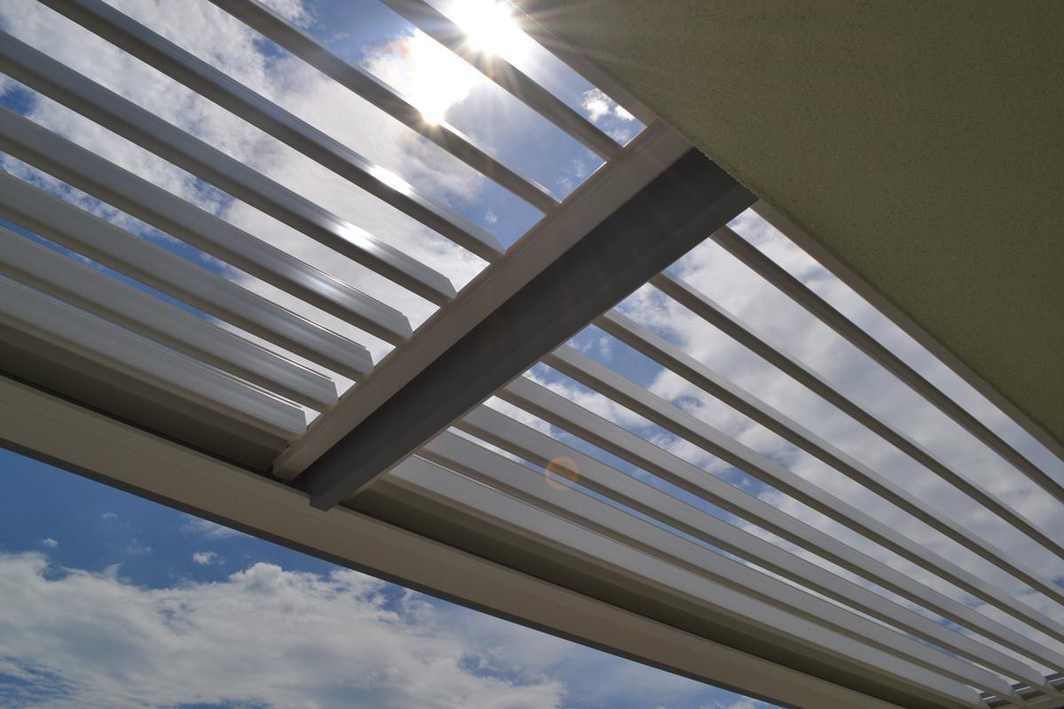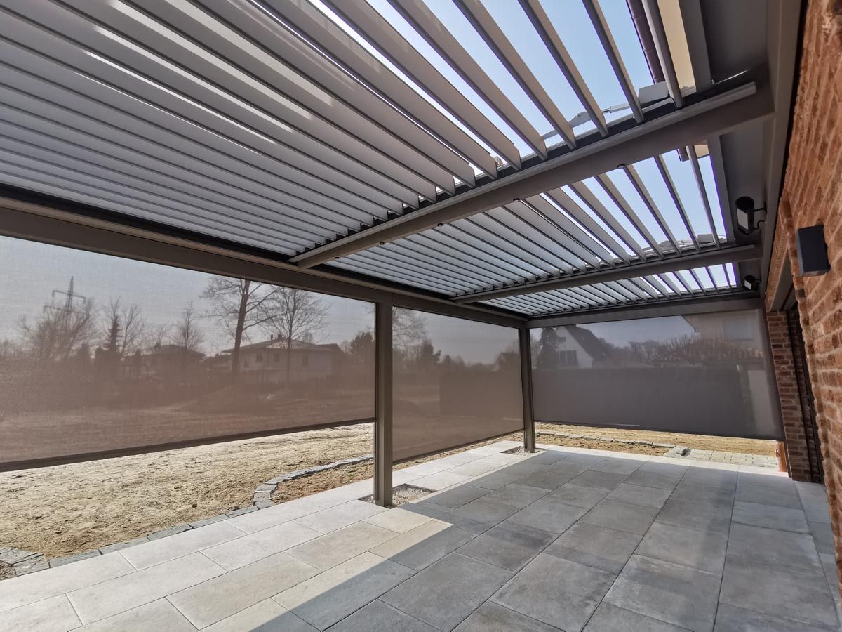 Pergola je zasnovana z dvema poljema vzporednih lamel, ki omogočata natančno regulacijo svetlobe in zračenja na celotni površini terase. Lamele so rotacijske in se lahko prilagajajo vremenskim razmeram – od odprtosti za sončne žarke do popolne zaščite pred dežjem.