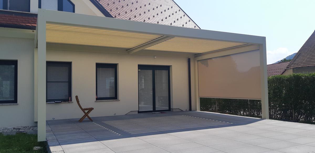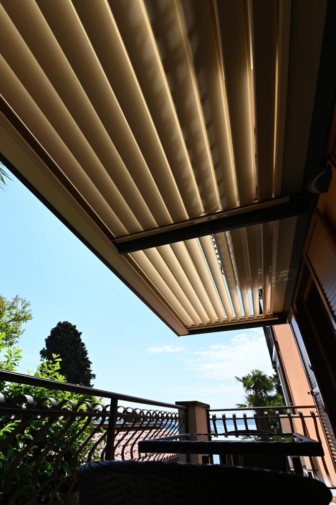 Sestavljena je iz dveh polj vzporednih lamel, ki se lahko obračajo do 160°, kar omogoča natančno regulacijo sončne svetlobe, prijetno prezračevanje in popolno zaščito pred dežjem. Tako terasa postane funkcionalna v vseh vremenskih razmerah – od senčne oaze v vročih dneh do udobnega zavetja ob večernem dežju.