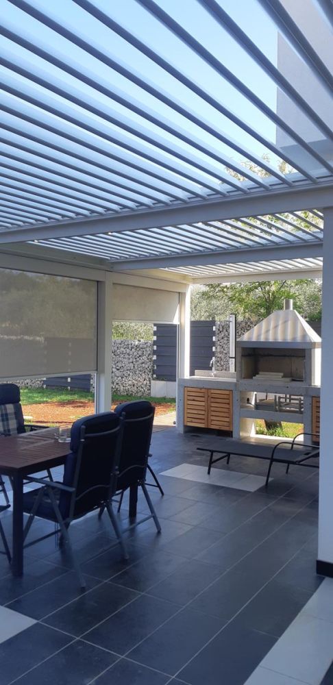 Na otoku Pagu stoji čudovita in elegantna pergola v beli barvi (RAL 9010), ki se popolnoma ujema z morsko okolico ter ustvarja lahkoten, svež in prestižen videz.