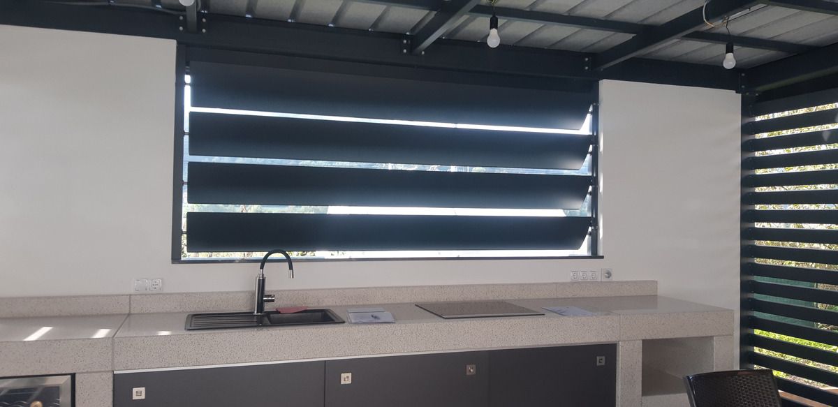 Brisoleji B210 so nameščeni za zaščito letne kuhinje, kjer združujejo funkcionalnost in estetsko dovršenost terasi.