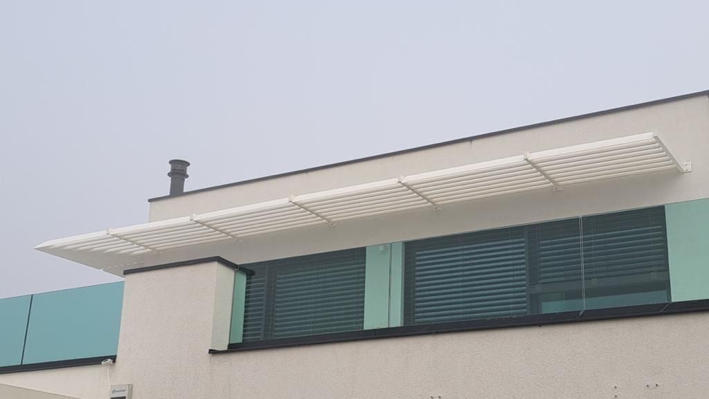 Horizontalna postavitev omogoča optimalno zaščito pred neposredno sončno svetlobo, hkrati pa ohranja odprt občutek prostora in estetsko linijo terase ali pergole.