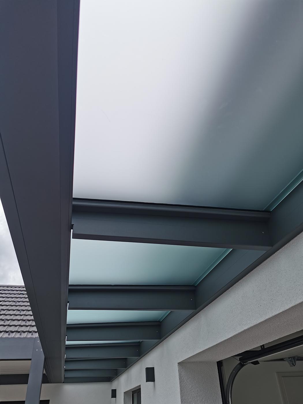Steklena streha – trpežna, varna in svetlaStreha pergole je izdelana iz kaljenega varnostnega stekla, ki omogoča maksimalen vdor naravne svetlobe in hkrati zagotavlja popolno zaščito pred vremenskimi vplivi.